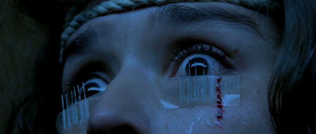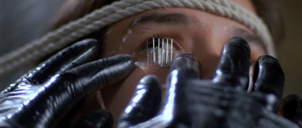 Betty is tied up and forced to watch (by way of a string of small needles being taped to her eyelids) as a unforeseen killer brutally stabs her lover. Remarkably, she is set free, but only so that this villainous murderer can continue to play his game, torturing her and slaughtering everyone close to her. The nature of this murderer falls more closely in line with the modern Jigsaw of the “Saw” movie franchise, as his mission is to construct scenarios where his victims are traumatized mentally just as much as they are mutilated physically. Part of the magic of this film is that Betty, and us as viewers, is that it is difficult to tell who to trust. Each character that is introduced, including the police officers who are there to protect her, feel like they could just as easily be the masked villain. Each time he is not actively on the screen, it feels like “he may be hiding, waiting” as Betty cries.