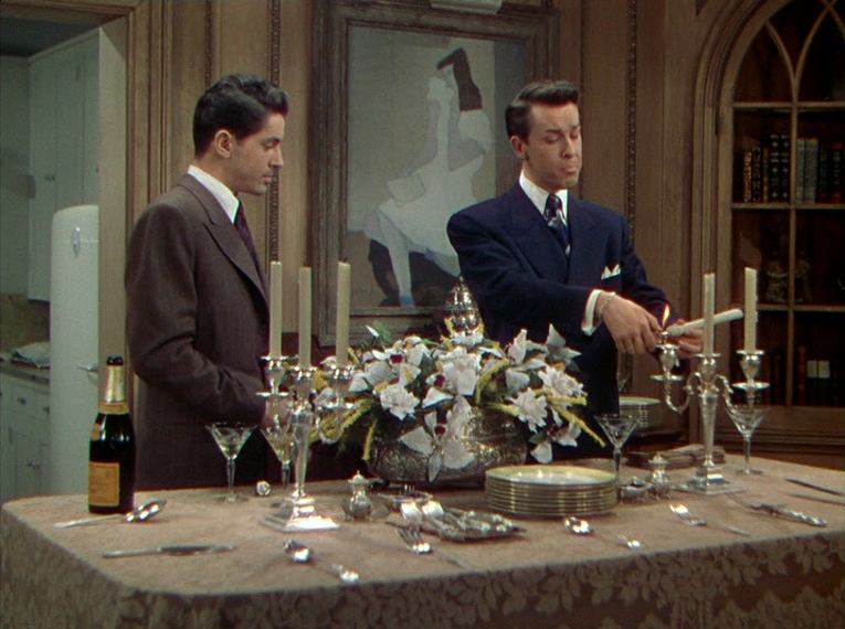 “Rope” (1948) directed by Alfred Hitchcock, is a masterful, sharply constructed story that balances levity with its sinister underbelly in classic noir fashion. In the moments leading up to a dinner party they are hosting, Philip Morgan (Farley Granger) and Brandon Shaw (John Dall) strangle to death their mutual friend David, and deposit him in a chest hidden in plain sight, right before their guests arrive. Morgan and Shaw hardly have a motive, but are driven by philosophical ideas about the superiority and inferiority of man, and carry out this heinous decision simply as a matter of proving that they can.
