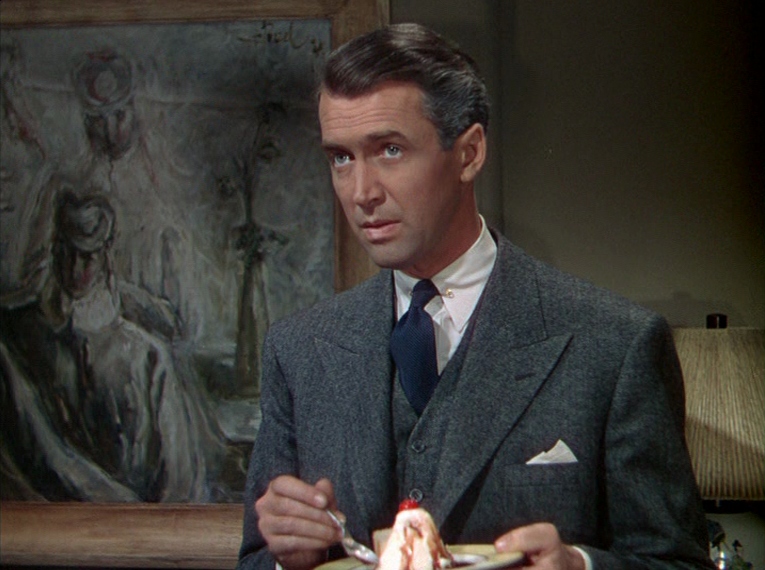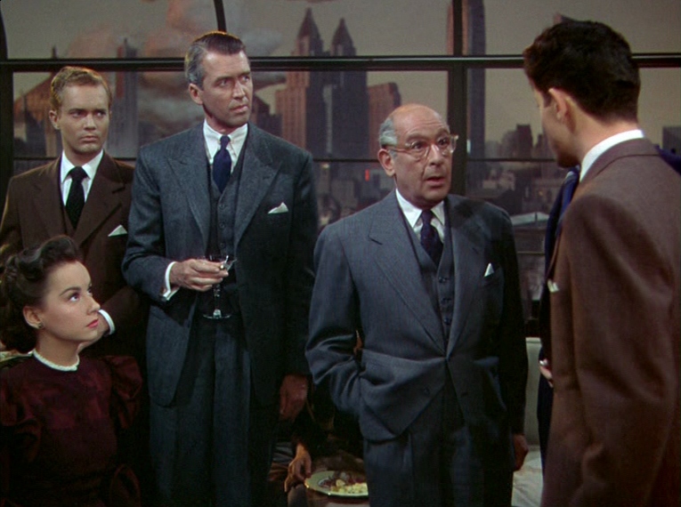 Brandon is an over-confident narcissist who spouts his grandiose ideas about the world and himself incessantly, a stark juxtaposition to Phillip’s quickly disintegrating composure and apparent guilt. Their arrogance is on full display as the two mingle with their party guests which include the deceased David’s fiancée (Joan Chandler), his father (Cedric Hardwicke) and the group of young men’s old college professor (Jimmy Stewart), dismissing and dodging their growing concern for their missing friend.
