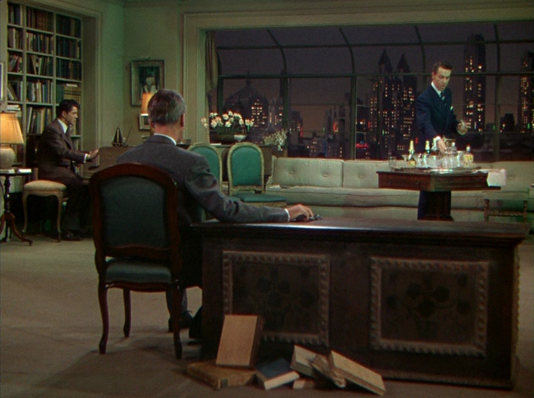 The screenplay was written by Arthur Laurents, adapted from the 1929 play of the same name by Patrick Hamilton, and the Hitchcock chose to showcase the story like a stage play for the screen. The entirety of the narrative takes place in the space of one skyscraping apartment, and more impressively, using clever technical tricks to avoid cuts and meticulously planned sequences (by cinematographers Joseph A. Valentine and William V. Skall, “Rope” is told in one-long shot. While it is most known for the aforementioned effect of taking place in real time, this is also Alfred Hitchcock’s first Technicolor film. Further, it is the first of many collaborations between Hitchcock and Jimmy Stewart, which came in the following decade. Here, Stewart’s subtlety and sophistication is necessary to this role where the performance requires the ability to inform the audience of his discoveries without speaking it outright. He acts as the vehicle to drive the film forward and connect the clues which we already know to be there.