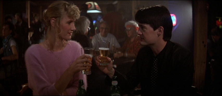 Opening with an “American Beauty”-esque neighborhood, complete with picket fences and well-kept flowers, the small town of Lumberton, North Carolina is experiencing a typical weekend morning, full of buzzing lawnmowers and children playing, when a man suddenly collapses in the grass. We then meet Jeffrey Beaumont (MacLachlan) who returns home to tend to his father after the near-fatal stroke. Shortly after arriving, he stumbles upon a severed human ear in a nearby field, and takes it into the police precinct and gives it to detective John Williams. He quickly becomes reacquainted with Williams’ daughter, Sandy (Laura Dern), and together, they start to attempt to solve the crime with a childlike playfulness and charm. However, the levity that prompted their adventures gets darker and stranger as Beaumont begins to spend more time with a nightclub singer Dorothy Vallens (Isabella Rosselini). At one point, Beaumont is hiding in her closet, naked, and watches as a man named Frank Booth (played by Dennis Hopper), as he engages in humiliating and degrading sexual acts with Dorothy on her living room floor, before hitting her and leaving.