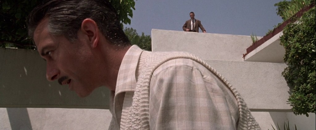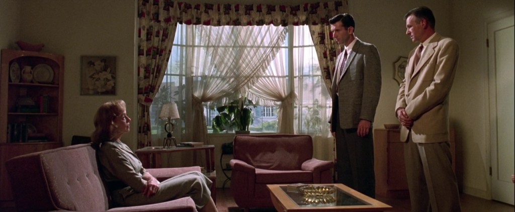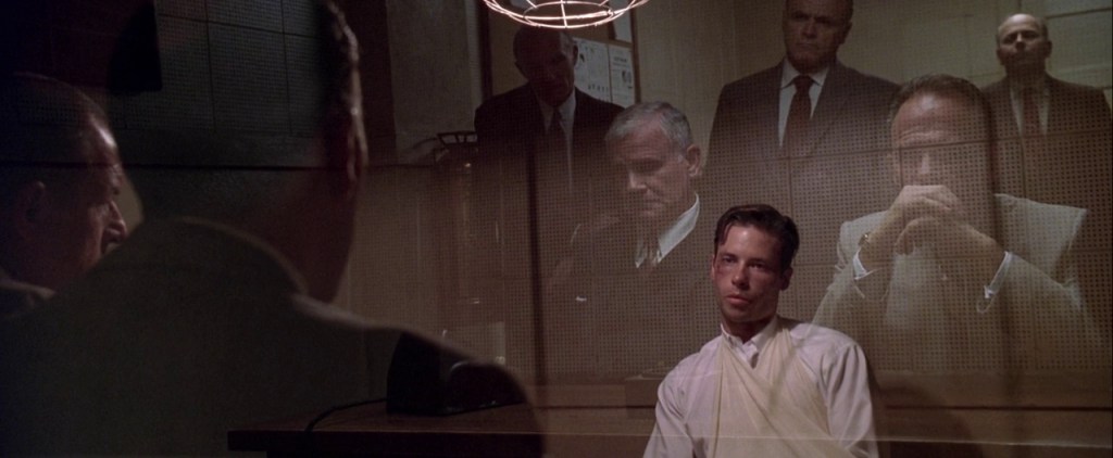 After a massacre shooting occurs at a bar called Nite Owl, Smith and Exley begin working to find the perpetrators which leads them to a shootout with a group of African American men, as well as interrogations with a group of former cops and a mesmerizingly beautiful hooker resembling the famous Veronica Lake, Lynn Bracken (Basinger). Through a sweeping number of twists and turns, it becomes clear that there is an upscale escort service called Fleur-de-Lis which is known for using plastic surgery to “cut” its prostitutes to look like film stars, run by Pierce Patchett (David Strathairn), and further, it appears that many a cop has taken their turn cavorting with the women in the service, a source of blackmail in the LAPD.