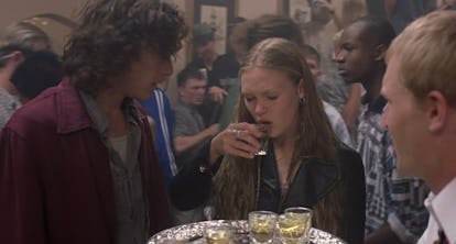 - This film came at a moment in time that was characterized by grunge and hip hop, and I appreciate that though Kat Stratford is written as a lover of riot girl music (as she 100% would be), they still properly used Julia Stiles and her well-known ability to dance (predominantly to hip hop) by giving her that on-the-table party scene when she was drunk. It doesn’t take away from the plot, but adds to it and does it in a way that elevates the storyline because it finally humanizes her character a little bit and allows her to mess up and act in an immature way – instead of doing her part to enjoy the party that she agreed to go to, and get to know her date, she decides to “get trashed, man – isn’t that what people do at parties?” It also gave way to two different notable choices that the film made that deserve to be discussed: