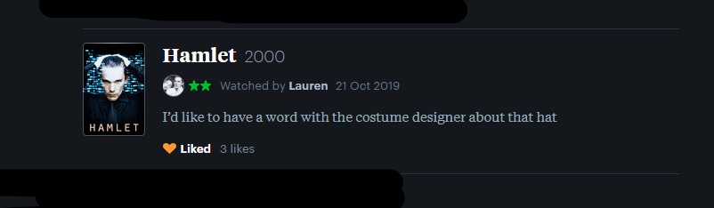 - There is a nod to another modernized Hamlet film “The Lion King” when they show a sign for the Broadway production in the background (was this intentional?)