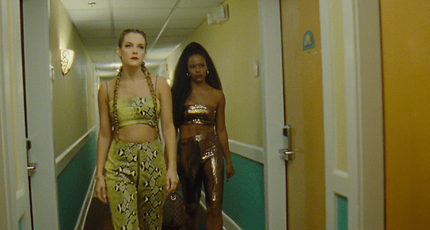 Zola and Stefani mostly wear pants (or shorts) through the entire film — another pointed statement.