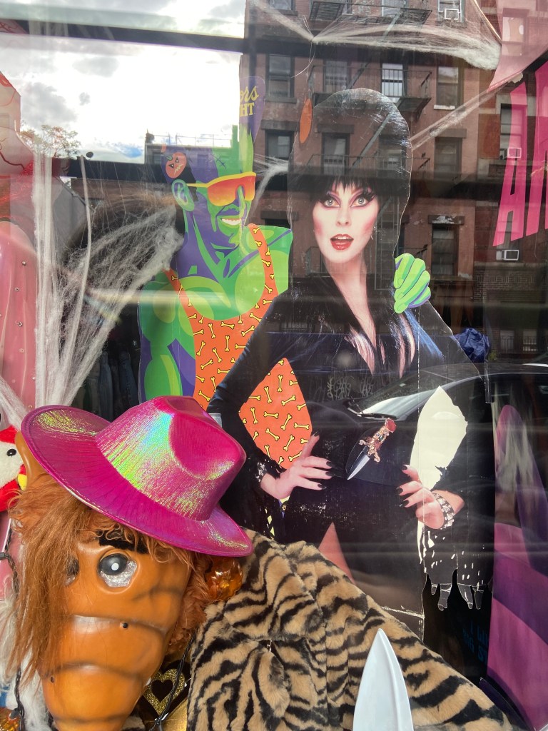 Below: The Elvira COORS Light Halloween campaign cut-out that I saw in the East Village right after reading about it in her book!!! (Note the lack of cleavage thanks to Mr. Zealot Jeffrey Coors)!